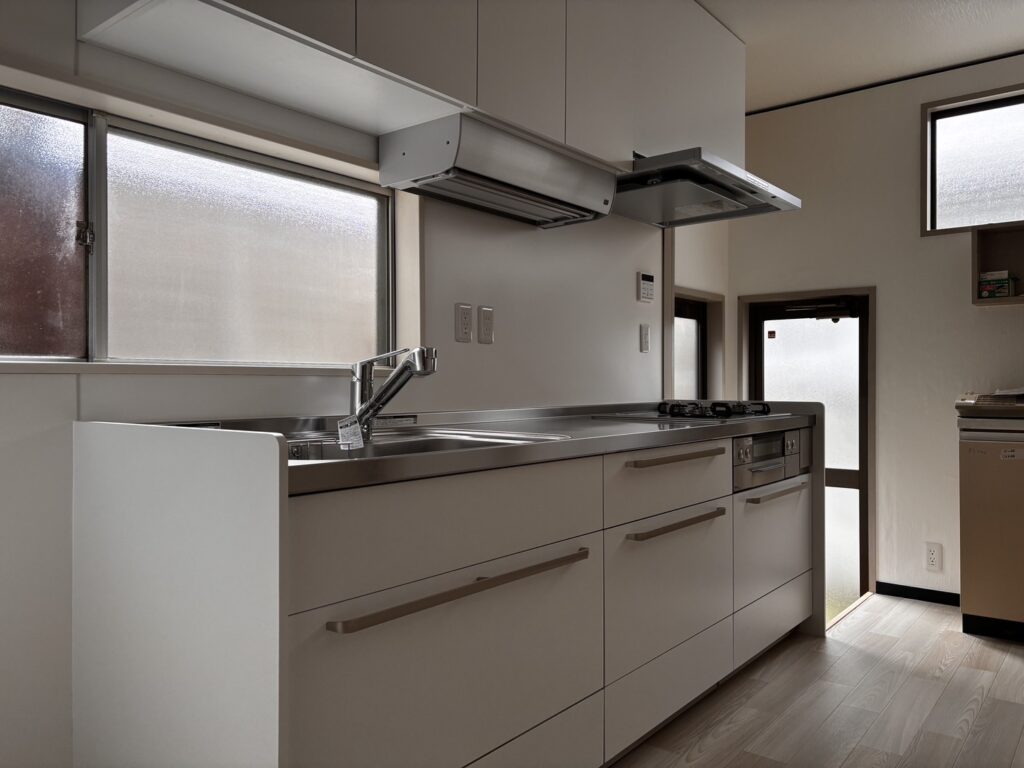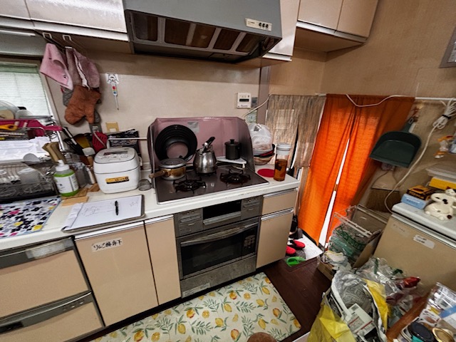 長年ご家族の食卓を支えてきたキッチンですが、経年による設備の古さや、収納不足など、お客様は日々の使い勝手に小さくないストレスを感じていらっしゃいました。換気扇の掃除も大変ですよね。
